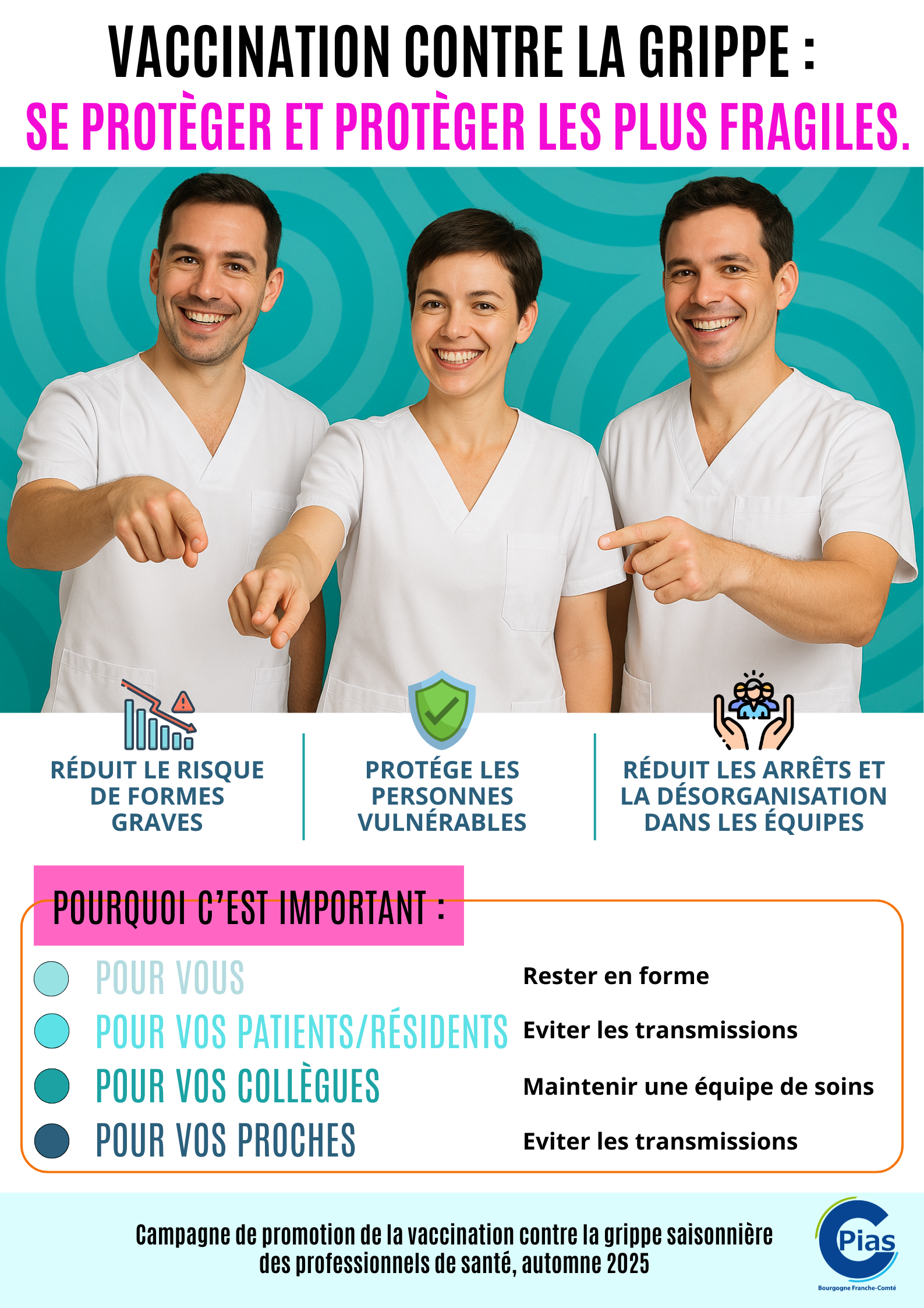 - CPias Auvergne-Rhône-Alpes 2019, beaucoup d'outils pratiques dont une 20aine d'affiches - C'est la saison de la grippe, vaccinez vous